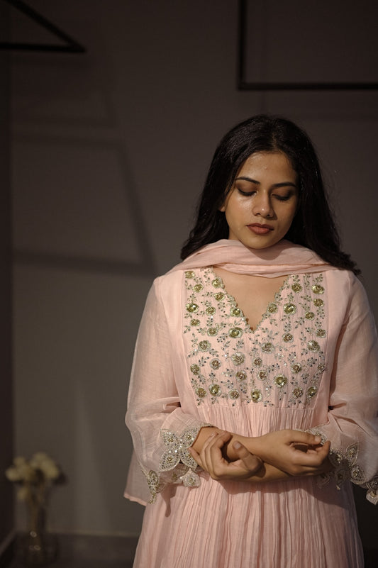 Pink Scalloped Sleeves Kurta Set