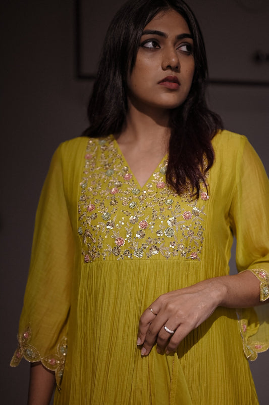 Yellow Scalloped Sleecs Kurta Set