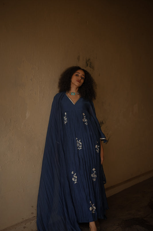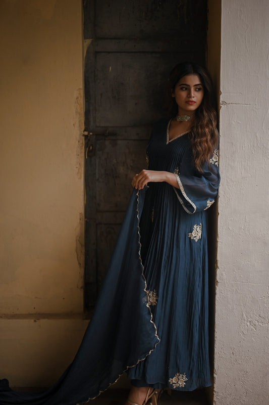 Ink Blue Floral Motif Kurta Set