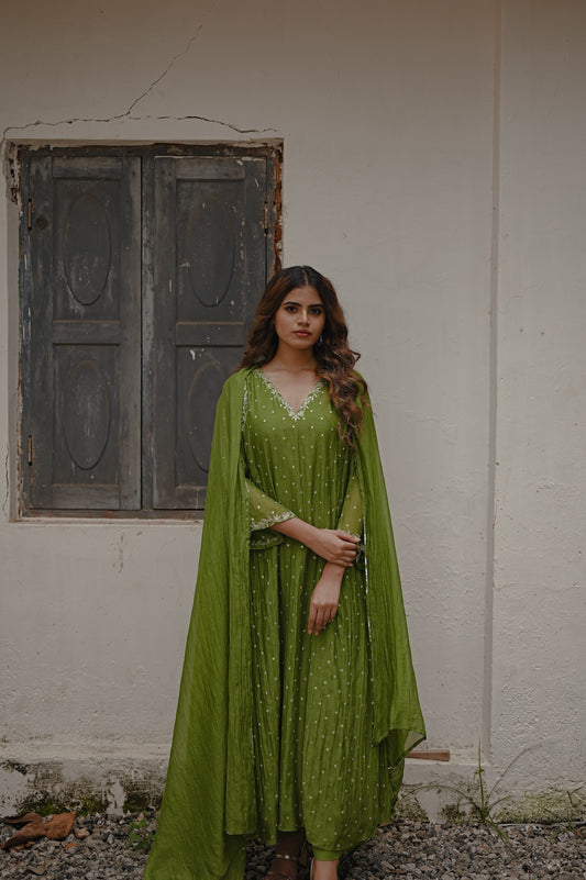 Mehendi Green Zari and Sequence work Kurta Set