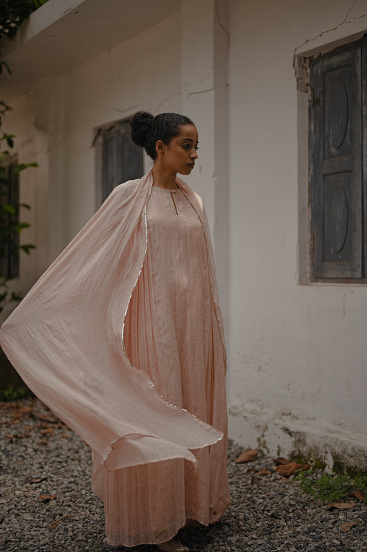 Powder Pink Zari Worked Kurta Set