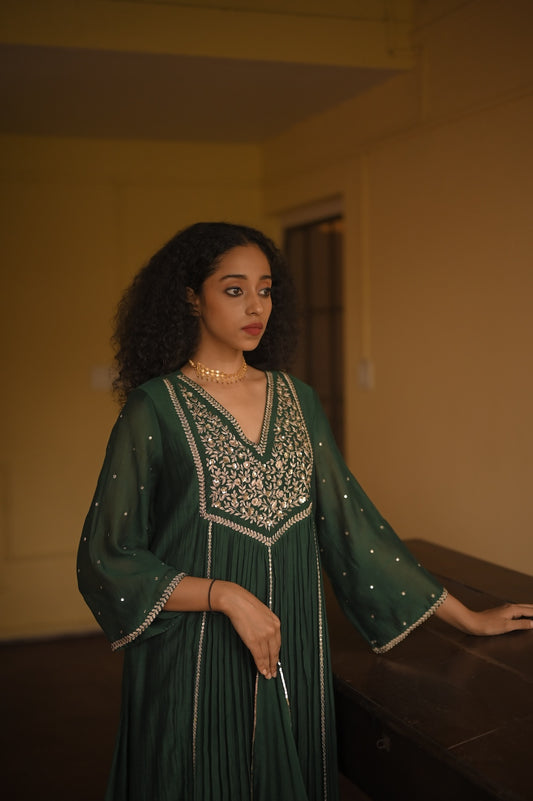 Deep Green Zari Work Kurta Set